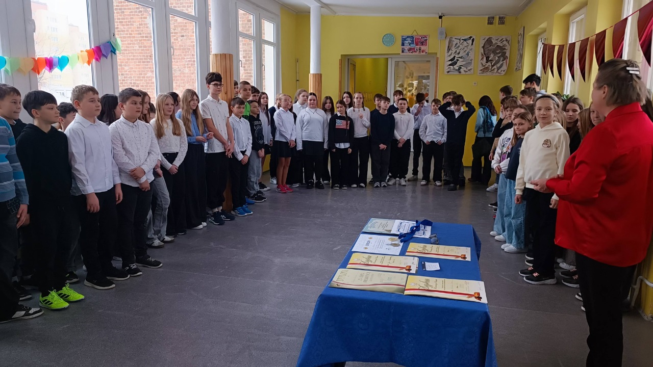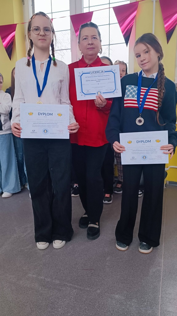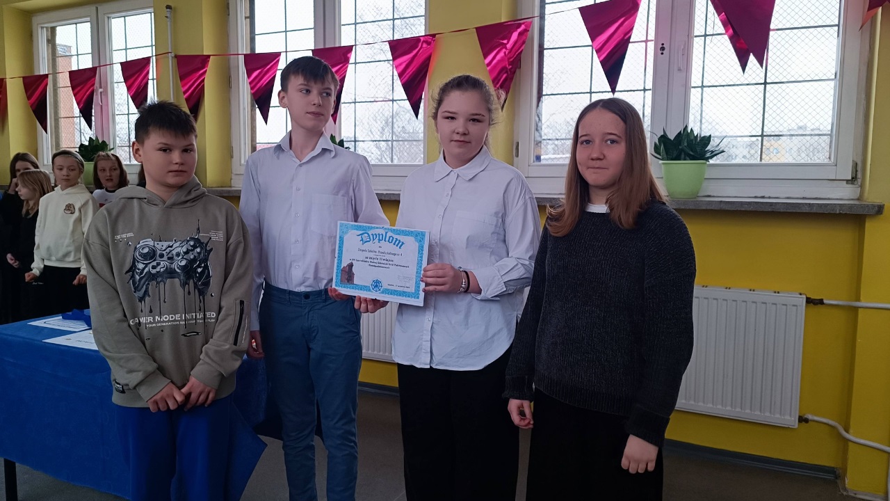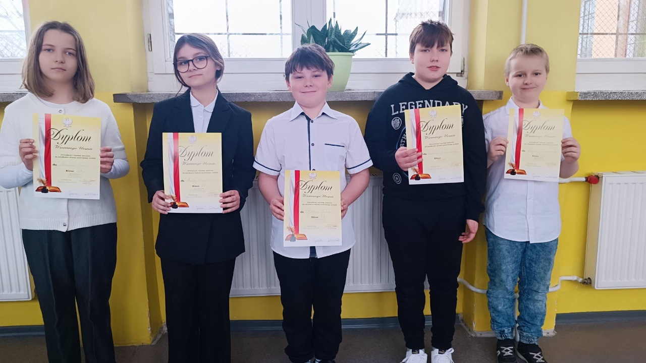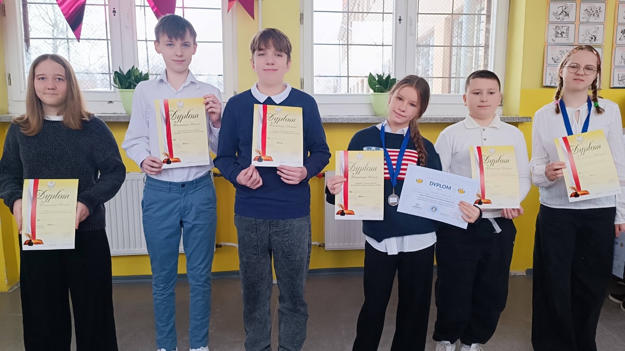 Podczas spotkania wręczono nagrody laureatom konkursów językowych, zespołowych i matematycznych, doceniając ich wiedzę, systematyczność oraz pasję rozwijania swoich zainteresowań. Szczególne gratulacje skierowano również do uczniów wzorowych, którym wręczono dyplomy uznania za bardzo dobre wyniki w nauce, nienaganną postawę oraz zaangażowanie w życie szkoły.