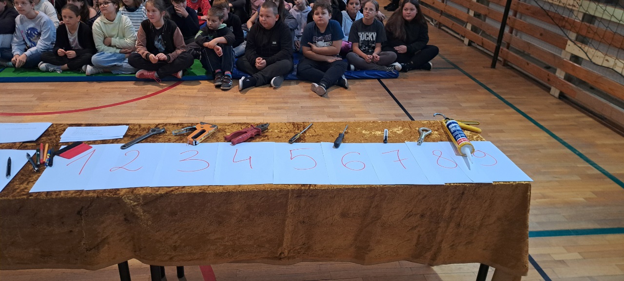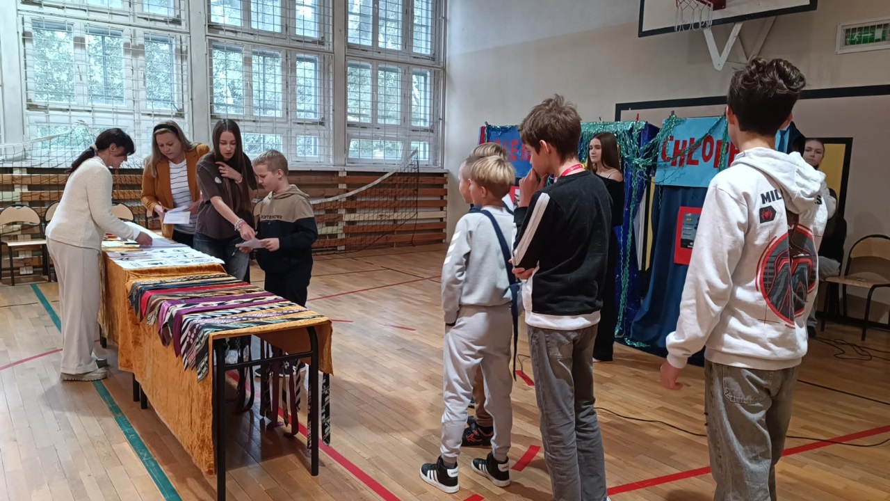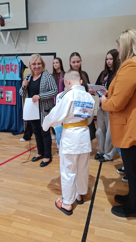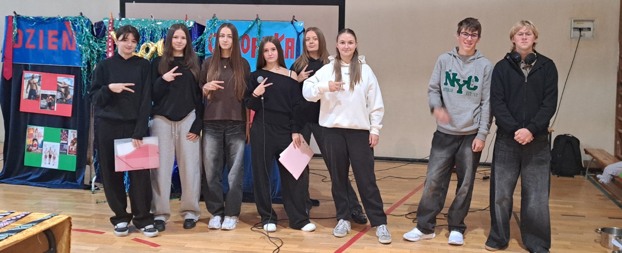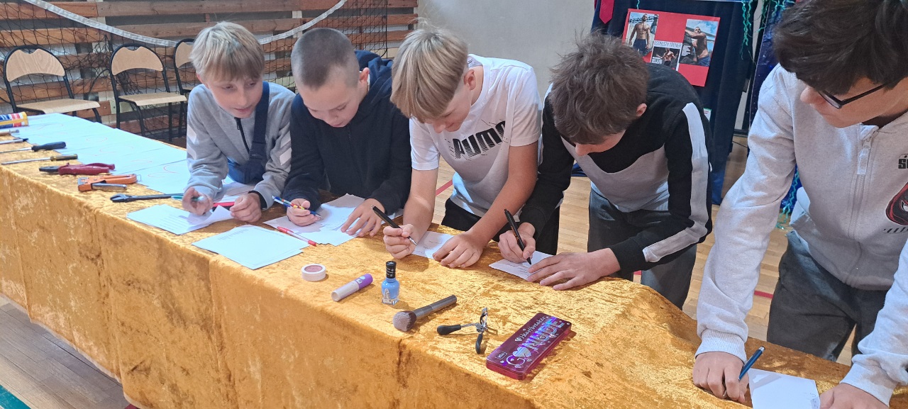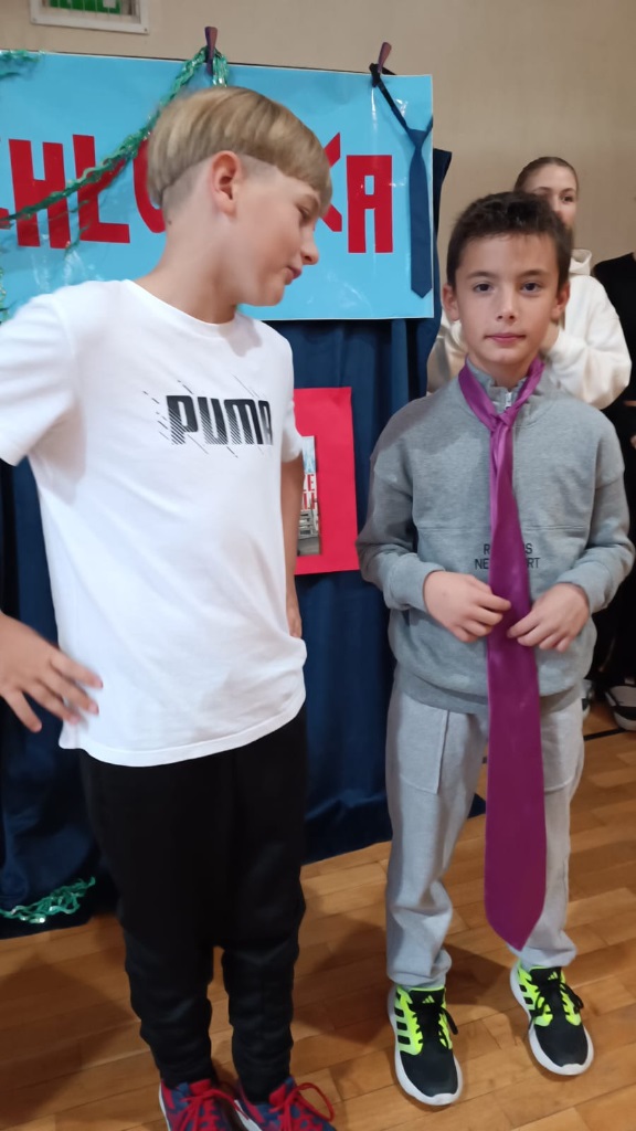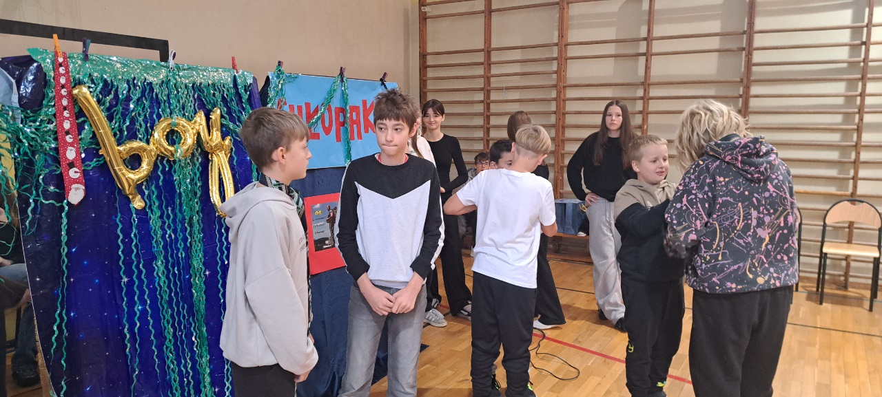 Samorząd Uczniowski przygotował dziś ogromną niespodziankę z okazji Dnia Chłopaka-wybory Super Chłopaka. Odbyły się one w sali gimnastycznej na dwóch poziomach-klas 4-6 oraz klas 7-8. Na śmiałków z każdej klasy czekały ciekawe i wymagające zadania np. wiązanie krawata, zmiana pieluszki czy wybór składników do dań takich jak pierogi, naleśniki czy bigos. Kandydaci na Super Chłopaka musieli się wykazać wiedzą o narzędziach, kosmetykach czy nawet wiedzą o Polsce. Dodatkowo chłopcy z klas 7-8 przygotowali pokaz mody połączony z pokazem talentów. Wybrano dwóch Super Chłopców-Sebastiana z klasy 6 oraz Olka z klasy 8 ale nie mamy żadnych wątpliwości-wszyscy kandydaci byli SUPER!